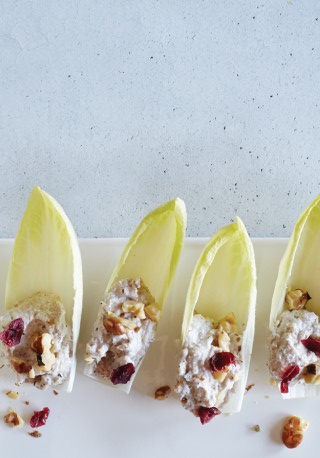 Орехово-сырная закуска на салатных листьях